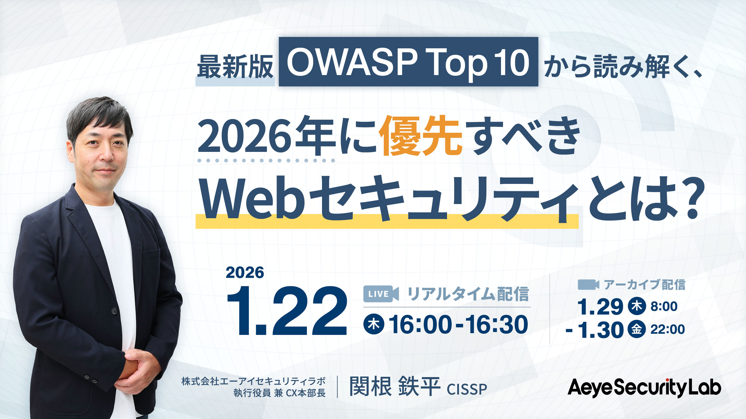 本セミナーでは、長年セキュリティエンジニアとして豊富な診断経験を持つ当社の関根が、OWASP Top 10 最新版の要点を実務視点でわかりやすく解説します。 -