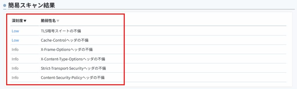 これらの基本的な設定不備を検査することで、セキュリティ強度の低いWeb資産を特定し、お客様のリスク評価の優先順位付けをご支援します。